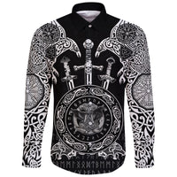 Viking Long Sleeve Button Shirt Huginn and Muniin With Mjolnir RLT12