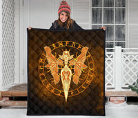 Viking Premium Quilt Gold Spear Of The God Odin - Gungnir and Two Gold Ravens RLT12