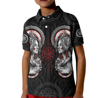 Viking Shieldmaiden Kid Polo Shirt with Viking Compass Vegvisir TS04
