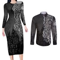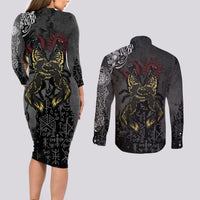 Viking Skoll and Hati Couples Matching Long Sleeve Bodycon Dress and Long Sleeve Button Shirts Chasing Eternity TS04