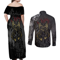Viking Skoll and Hati Couples Matching Off Shoulder Maxi Dress and Long Sleeve Button Shirts Chasing Eternity TS04