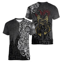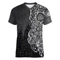Viking Skoll and Hati Women V Neck T Shirt Chasing Eternity TS04