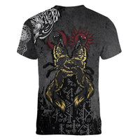 Viking Skoll and Hati Women V Neck T Shirt Chasing Eternity