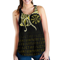 Viking Women's Racerback Tank, Fenrir Raven and Vegvisir Tattoo Yellow RLT12