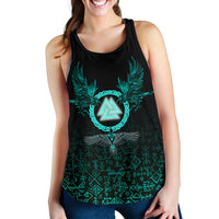 Viking Women's Racerback Tank Three Raven and Valknut Cyan RLT12