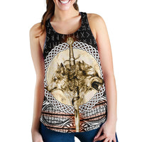 Viking Women's Racerback Tank - Wolf and Vikings Tattoo 3D RLT12