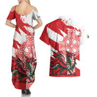 Wales Celtic Cross Couples Matching Summer Maxi Dress and Hawaiian Shirt Cymru Am Byth Red Version