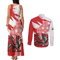 Wales Celtic Cross Couples Matching Tank Maxi Dress and Long Sleeve Button Shirt Cymru Am Byth Red Version