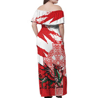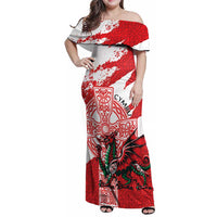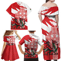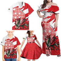 Wales Celtic Cross Family Matching Off Shoulder Maxi Dress and Hawaiian Shirt Cymru Am Byth Red Version