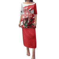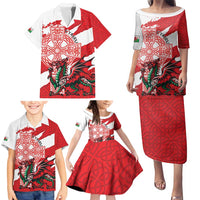 Wales Celtic Cross Family Matching Puletasi and Hawaiian Shirt Cymru Am Byth Red Version