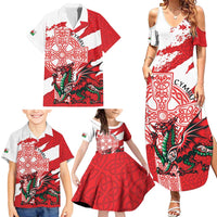 Wales Celtic Cross Family Matching Summer Maxi Dress and Hawaiian Shirt Cymru Am Byth Red Version