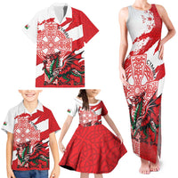 Wales Celtic Cross Family Matching Tank Maxi Dress and Hawaiian Shirt Cymru Am Byth Red Version