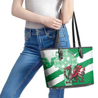 Wales Celtic Cross Leather Tote Bag Cymru Am Byth Green Version LT18
