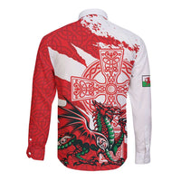 Wales Celtic Cross Long Sleeve Button Shirt Cymru Am Byth Red Version LT18