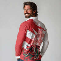 Wales Celtic Cross Long Sleeve Polo Shirt Cymru Am Byth Red Version