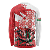 Wales Celtic Cross Long Sleeve Shirt Cymru Am Byth Red Version