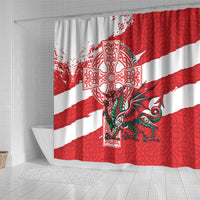 Wales Celtic Cross Shower Curtain Cymru Am Byth Red Version LT18
