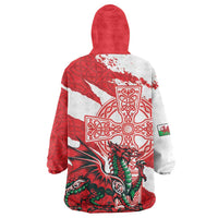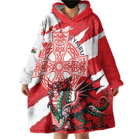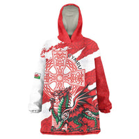 Wales Celtic Cross Wearable Blanket Hoodie Cymru Am Byth Red Version