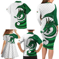 Wales Celtic Dragon Family Matching Long Sleeve Bodycon Dress and Hawaiian Shirt Welsh Mythic Green Dragon