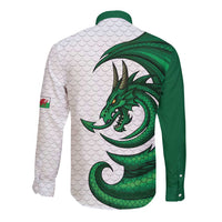 Wales Celtic Dragon Long Sleeve Button Shirt Welsh Mythic Green Dragon