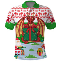 Wales Christmas Polo Shirt with Red Dragon Gift and Holiday Crest Snow Scene TS04