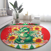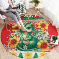 Wales Christmas Round Carpet Cute Green Welsh Dragon and Daffodils
