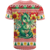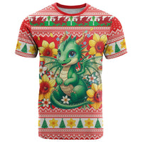Wales Christmas T Shirt Cute Green Welsh Dragon and Daffodils