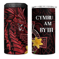 Wales Cymru Am Byth 4 in 1 Can Cooler Tumbler Welsh Dragon with Celtic Cross