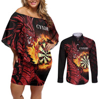 Wales Darts Personalised Couples Matching Off Shoulder Short Dress and Long Sleeve Button Shirt Red Dragon Cymru Am Byth LT7