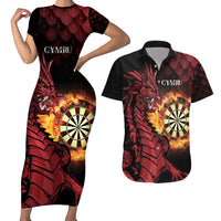 Wales Darts Personalised Couples Matching Short Sleeve Bodycon Dress and Hawaiian Shirt Red Dragon Cymru Am Byth