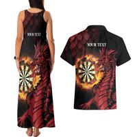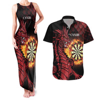 Wales Darts Personalised Couples Matching Tank Maxi Dress and Hawaiian Shirt Red Dragon Cymru Am Byth