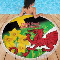 Wales Saint David's Day Beach Blanket Welsh Dragon Dydd Gwyl Dewi Hapus!