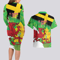 Wales Saint David's Day Couples Matching Long Sleeve Bodycon Dress and Hawaiian Shirt Welsh Dragon Dydd Gwyl Dewi Hapus!