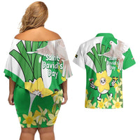 Wales Saint David's Day Couples Matching Off Shoulder Short Dress and Hawaiian Shirt Welsh Funny Leek Daffodil