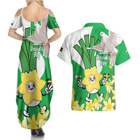 Wales Saint David's Day Couples Matching Summer Maxi Dress and Hawaiian Shirt Welsh Funny Leek Daffodil