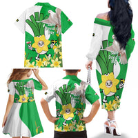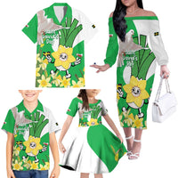 Wales Saint David's Day Family Matching Off The Shoulder Long Sleeve Dress and Hawaiian Shirt Welsh Funny Leek Daffodil