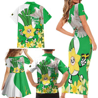 Wales Saint David's Day Family Matching Short Sleeve Bodycon Dress and Hawaiian Shirt Welsh Funny Leek Daffodil