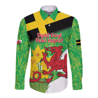 Wales Saint David's Day Long Sleeve Button Shirt Welsh Dragon Dydd Gwyl Dewi Hapus! LT14