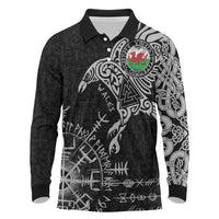 Wales Viking Ravens Long Sleeve Polo Shirt Vegvisir Runes Pattern LT18