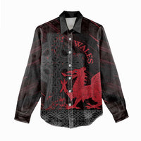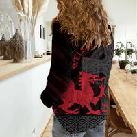 Wales Women Casual Shirt Celtic Cross Welsh Red Dragon