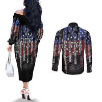 We The People Couples Matching Off The Shoulder Long Sleeve Dress and Long Sleeve Button Shirt No Kings In America Since 1776