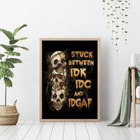 Wire Skull Canvas Wall Art Stuck Between Idk Idc And Idgaf DT01