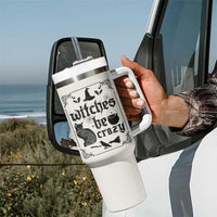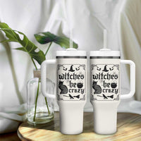 Witch Halloween Iced Coffee Tumbler With Handle Funny Witches Be Crazy Black Cat Witchy Vibes Witchcraft TB10
