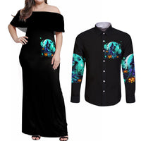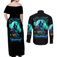 Witch Skull Couples Matching Off Shoulder Maxi Dress and Long Sleeve Button Shirts Come With Us And You Will See Our Halloween DT01