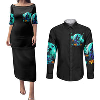Witch Skull Couples Matching Puletasi Dress and Long Sleeve Button Shirts Come With Us And You Will See Our Halloween