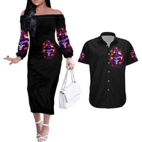 Wizard Skull Halloween Couples Matching Off The Shoulder Long Sleeve Dress and Hawaiian Shirt Don't Try To Figure Me Out I'm A Special DT01