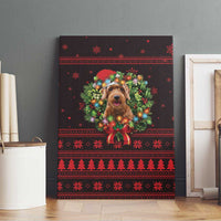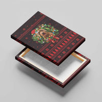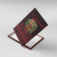 Wreath and Santa Dog in Red Canvas Wall Art with Black Holiday Pattern Design TS04