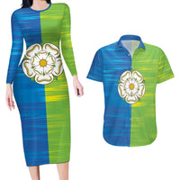 Yorkshire Heritage Personalized Couples Matching Long Sleeve Bodycon Dress and Hawaiian Shirt East Yorkshire White Rose LT9
