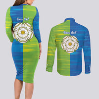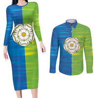 Yorkshire Heritage Personalized Couples Matching Long Sleeve Bodycon Dress and Long Sleeve Button Shirt East Yorkshire White Rose LT9