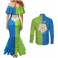 Yorkshire Heritage Personalized Couples Matching Mermaid Dress and Long Sleeve Button Shirt East Yorkshire White Rose LT9